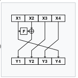 Яка розрядність (біт) однієї гілки мережі Фейстеля, зображеної на рисунку