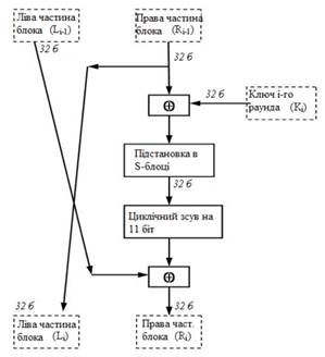 До скількох біт розширюються ліва Li та права Ri частини блоку в кожному раунді криптоалгортму DES