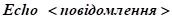 Виведення повідомлення з командного файлу відбувається командою наступної структури: