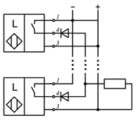 Яка схема під’єднання індуктивних давачів наведена на рисунку?