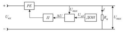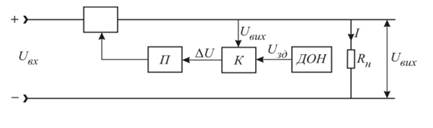 Вкажіть пропущений елемент на структурній схемі компенсаційного стабілізатора напруги?