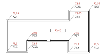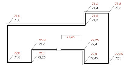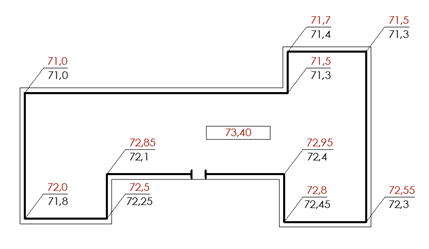 Вибрати правильний варіант привязки будинку до перепланованого рельєфу та визначеної відміткою першого поверху, за умови, що мінімальна висота цоколя складає 0,45 м.