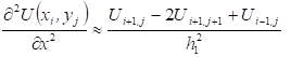 Для частинних похідних другого порядку виберіть правильні різницеві відношення: