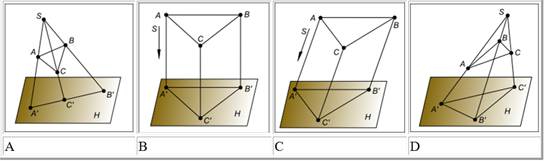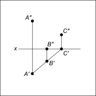 Дано зображення фігури ABC: Косокутну проекцію трикутника АВС на площину проекцій H(П1) показано на зображенні____
