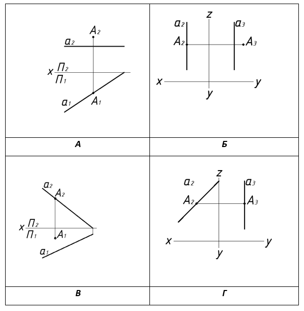 На якому рисунку один кінець заданого відрізка прямої належить фронтальній площині проекцій?