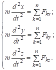 Напишіть диференціальні рівняння руху матеріальної точки в проекціях на осі декартової системи координат