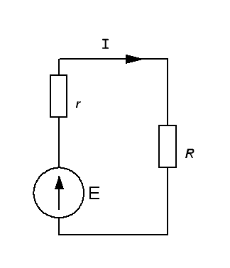 Знайдіть силу струму в колі І, якщо ЕРС Е=3В, внутрішній опір r=1Ом, опір навантаження R=1 Ом