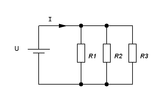 Визначіть струм в колі І, якщо R1=10 Ом R2=20 Ом R3=40 Ом U=42 В