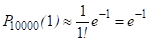 Ймовiрнiсть влучення в мiшень при одному пострiлi дорiвнює 0,0001. Яка ймовiрнiсть влучення в мiшень однiєю кулею при 10000 пострiлах?