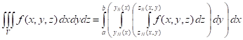 для всiх x ∈ [a, b], а область V , що знаходиться в просторi Oxyz, правильна в напрямку осi Oz i обмежена поверхнями
