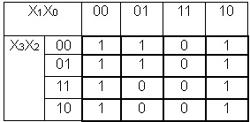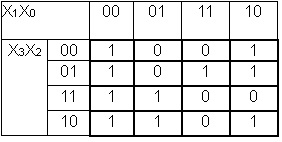 Записати функцію Y0 =(0, 1, 2, 4, 5, 6, 7, 8, 10, 12) в карту Карно