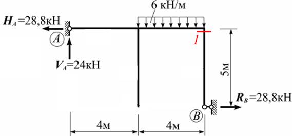 Чому дорівнює згинний момент M в перерізі «1» рами? (значення вказати по модулю)
