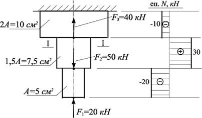 Визначити величину нормальної напруги (, МПа) в перерізі бруса І-І