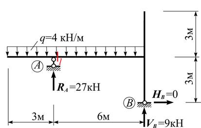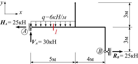 Чому дорівнює поперечна сила Q в перерізі «1» рами?