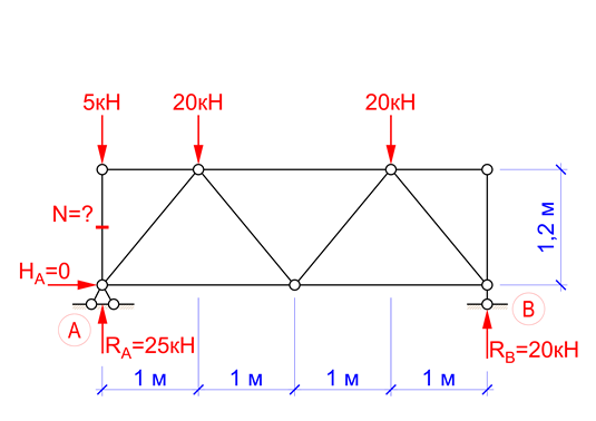 Чому дорівнює зусилля в позначеному стержні ферми (кН)?