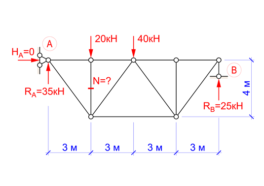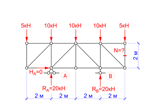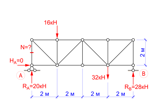 Чому дорівнює зусилля в позначеному стержні ферми (кН)?