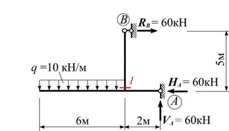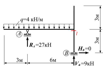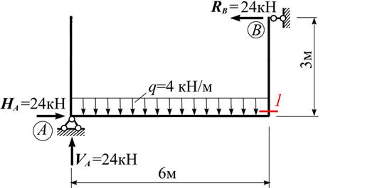Чому дорівнює поперечна сила Q в перерізі «1» рами?