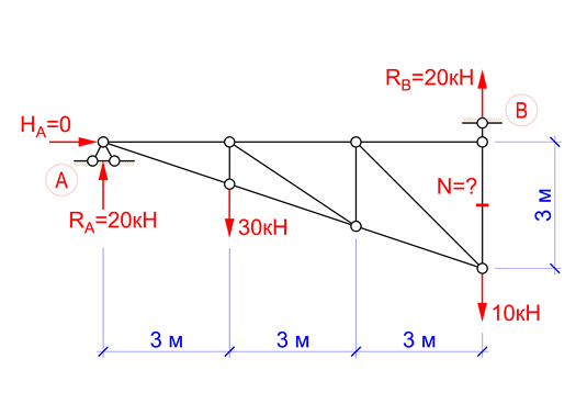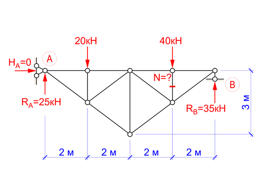Чому дорівнює зусилля в позначеному стержні ферми (кН)?