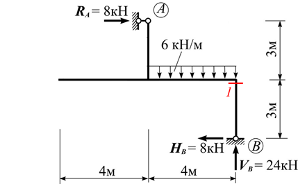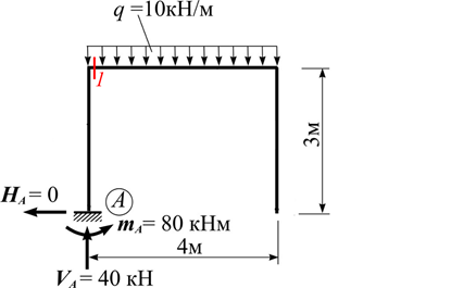 Чому дорівнює згинний момент M в перерізі «1» рами? (значення вказати по модулю)