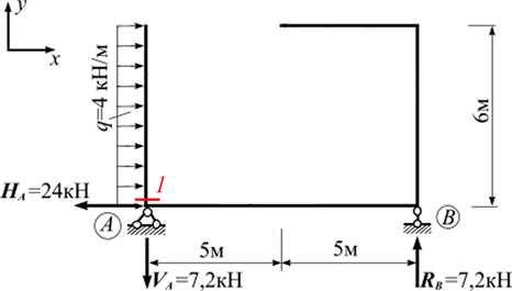 Чому дорівнює поперечна сила Q в перерізі «1» рами?