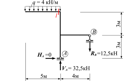 Чому дорівнює поперечна сила Q в перерізі «1» рами?