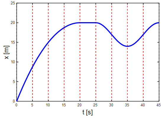 Una particella, partendo da ferma, si muove lungo l'asse x di un sistema di riferimento, con legge del moto Quale delle seguenti affermazioni è corretta dopo 3 secondi? dove