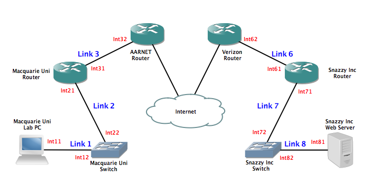 Question: consider the response from the web server back to the client.When the response traverses Snazzy Inc's switch, crossing from Link 8 to Link 7, briefly explain what happens to the packet.Your answer should include bullet points that indicate the source and destination address at layers 2, 3, and 4 of the packet header.