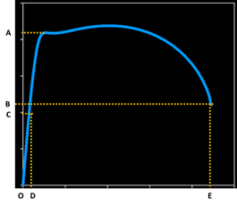 Suatu polymer meunjukkan kurva tegangan-regangan seperti pada gambar. Awal terjadinya deformasi plastis ditunjukkan oleh: