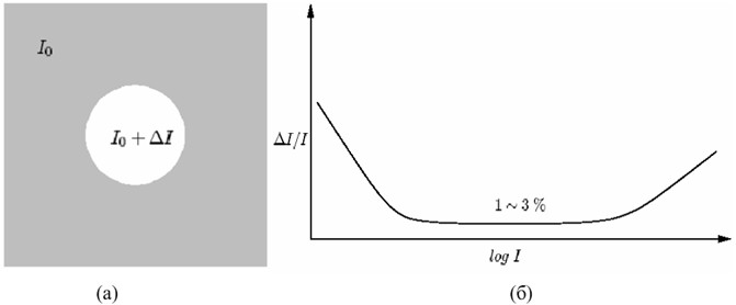 Які можна зробити висновки із залежності мінімального контрасту від яскравості при визначенні порогу нерозрізненості елементів зображення?