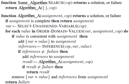 This search algorithm is a depth-first search in the context of constraint satisfaction problems (CSPs).
