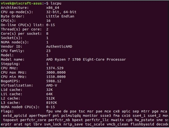 Було одержано наступний вивід команди lscpu: