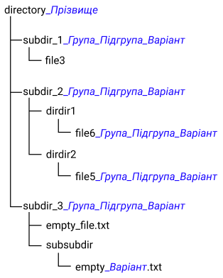 1) Створіть подану нижче структуру файлів та каталогів: