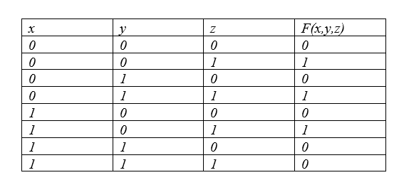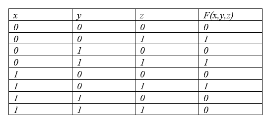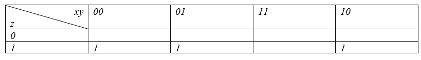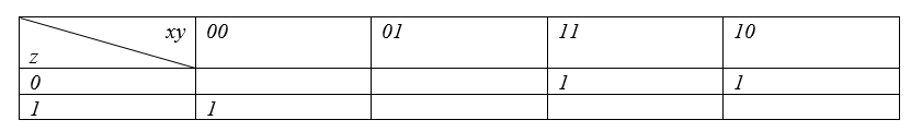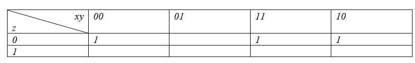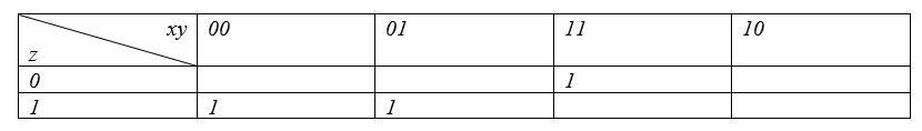Мінімізувати функцію F(x, y, z) за допомогою карти Карно та записати результат за допомогою МДНФ: