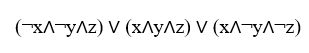 ¬x1¬x2x3 ∨ ¬x1x2x3 ∨ x1¬x2¬x3 ∨ x1¬x2x3