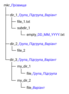 • Скопіюйте каталог subdir_1 разом з його вмістом у каталог dir_3_Група_Підгрупа_Варіант