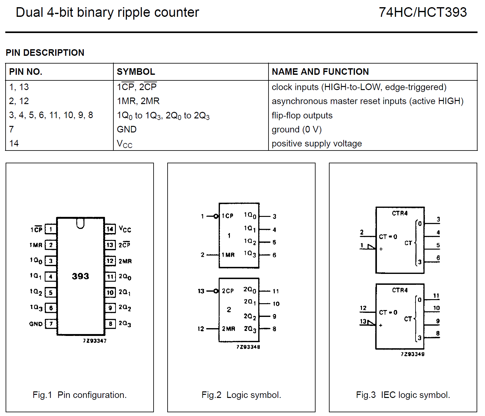 The master resets are active-HIGH asynchronous inputs to each 4-bit counter identified by the "1" and "2" in the pin description.A HIGH level on the nMR input overrides the clock and sets the outputs LOW.