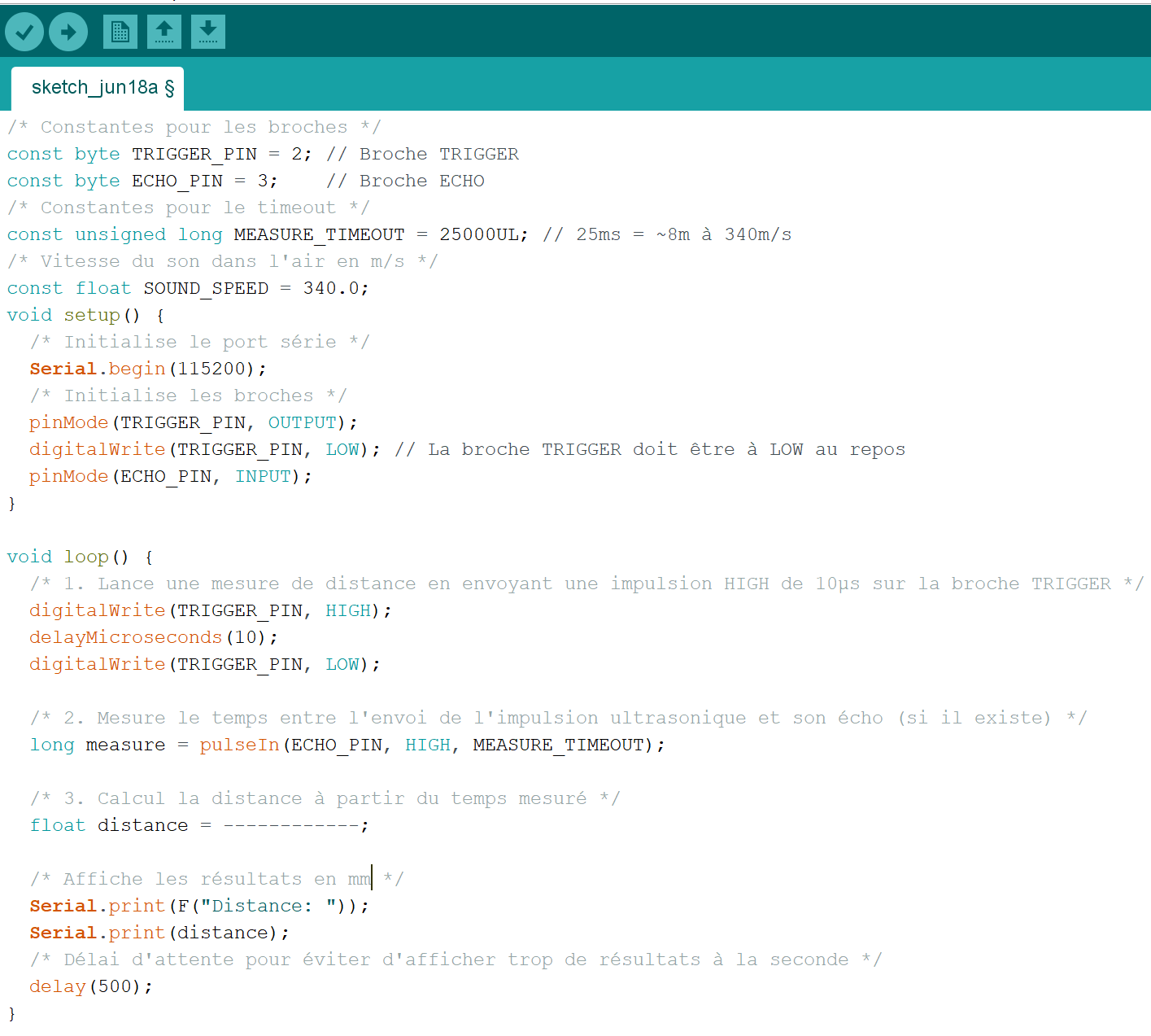 Que vaut la distance (en mm) entre l'obstacle et et le capteur ultrason de distance HSR04