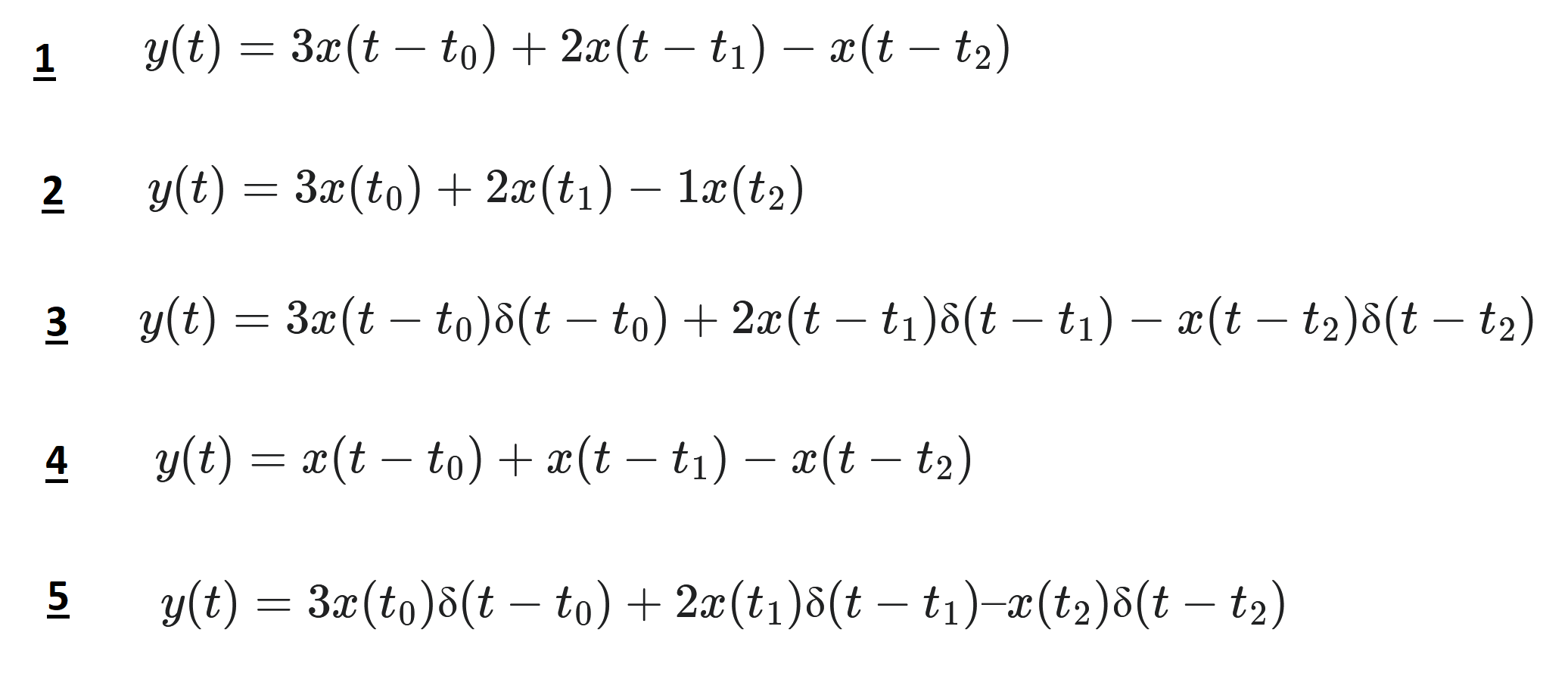 h(t)=3δ(t-t0) + 2δ(t−t1 ) – δ(t−t2)