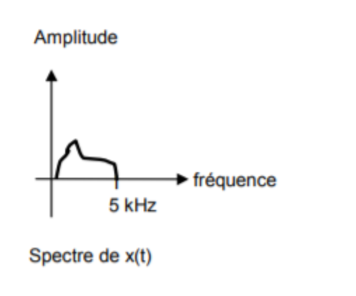 Un signal analogique x(t) dont le spectre est représenté ci-dessous est échantillonné avec 3 fréquences fe différentes : 7,5 KHz 10 KHz et 15 KHz