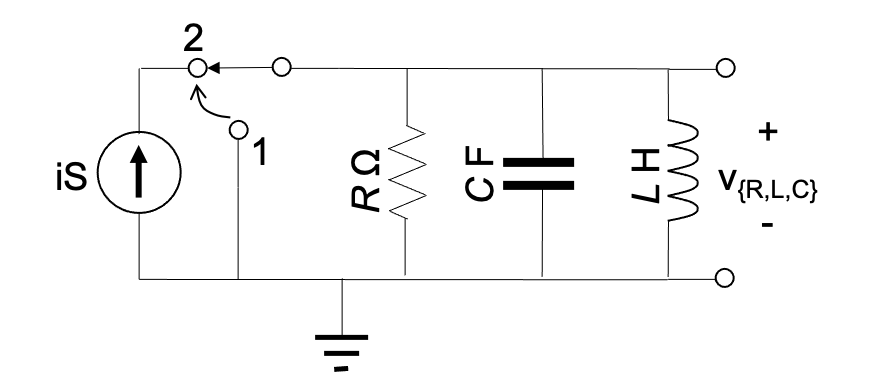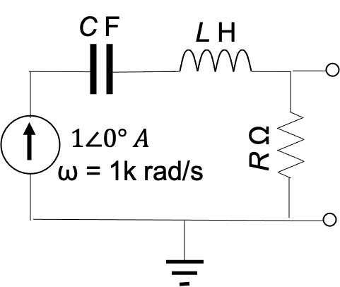 The circuit shown below is a parallel RLC circuit. C = 22 nF, L = 22 mH, R = 500 Ω.