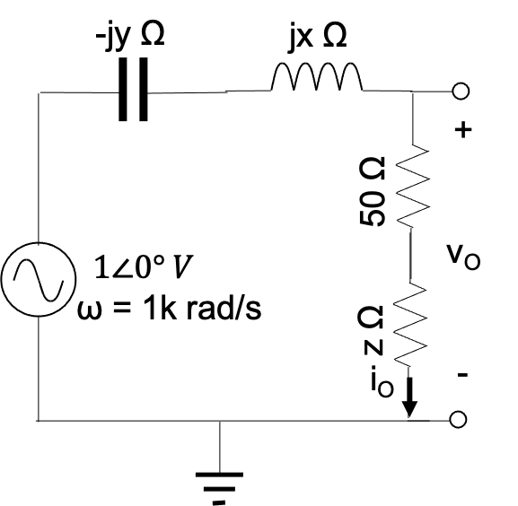 What is the phase of the voltage (vO) dropped over the load in the circuit shown, in degrees, to within 1% accuracy?