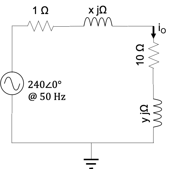 The inductor impedances are set by x = 1.6 and y = 18.2.