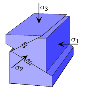 Regarding the block diagram below, what is the meaning of the labelled arrows and what could you say about the tectonic setting in which the structures formed?