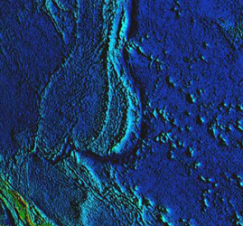 What sentence best describes the curvature of the Mariana trench in the figure below?
