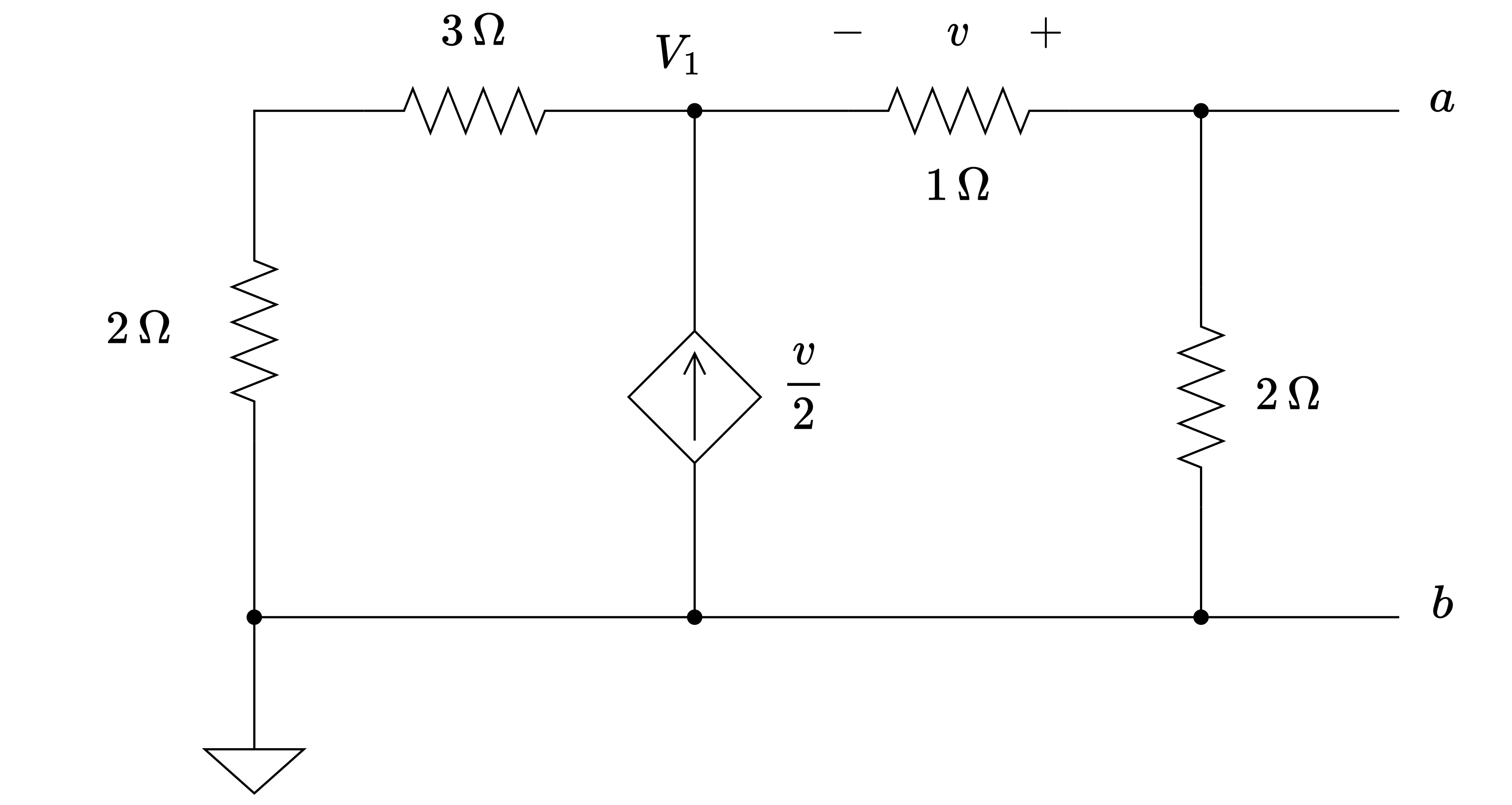 Find the Thevenin's equivalent circuit for the following circuit. Assume i > 0 and