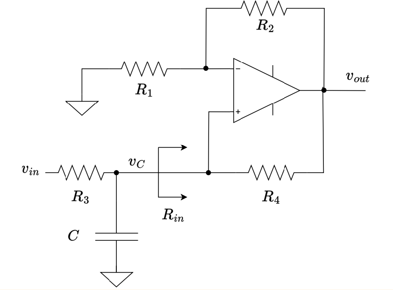 If the input to the op-amp circuit below is A\text{sin}(\omega t) + B\text{cos}(2 \omega t) where