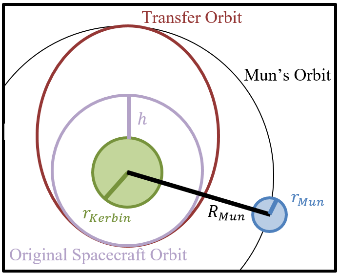 1. Which of the following is a correct expression for the semi-major axis of the transfer orbit from the orbit around Kerbin to the Mun?