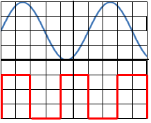 Make the correct interpretation of waveforms picture for the following settings of the oscilloscope: : Cx = 1ms/div, Cy = 2V/div, δCx = δCy = 3%