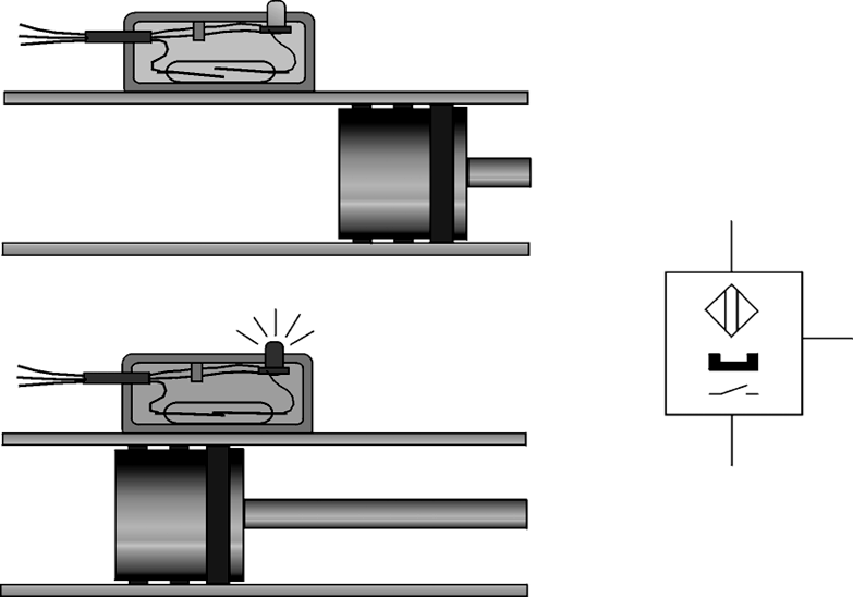 What statement about the detecting the advanced or retracted position of the piston rod, shown below are correct?