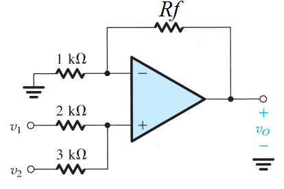 If Rf = 3.3 kOhm, V1 = 0, and V2 = 3.6 V, then Vo = ..... V.
